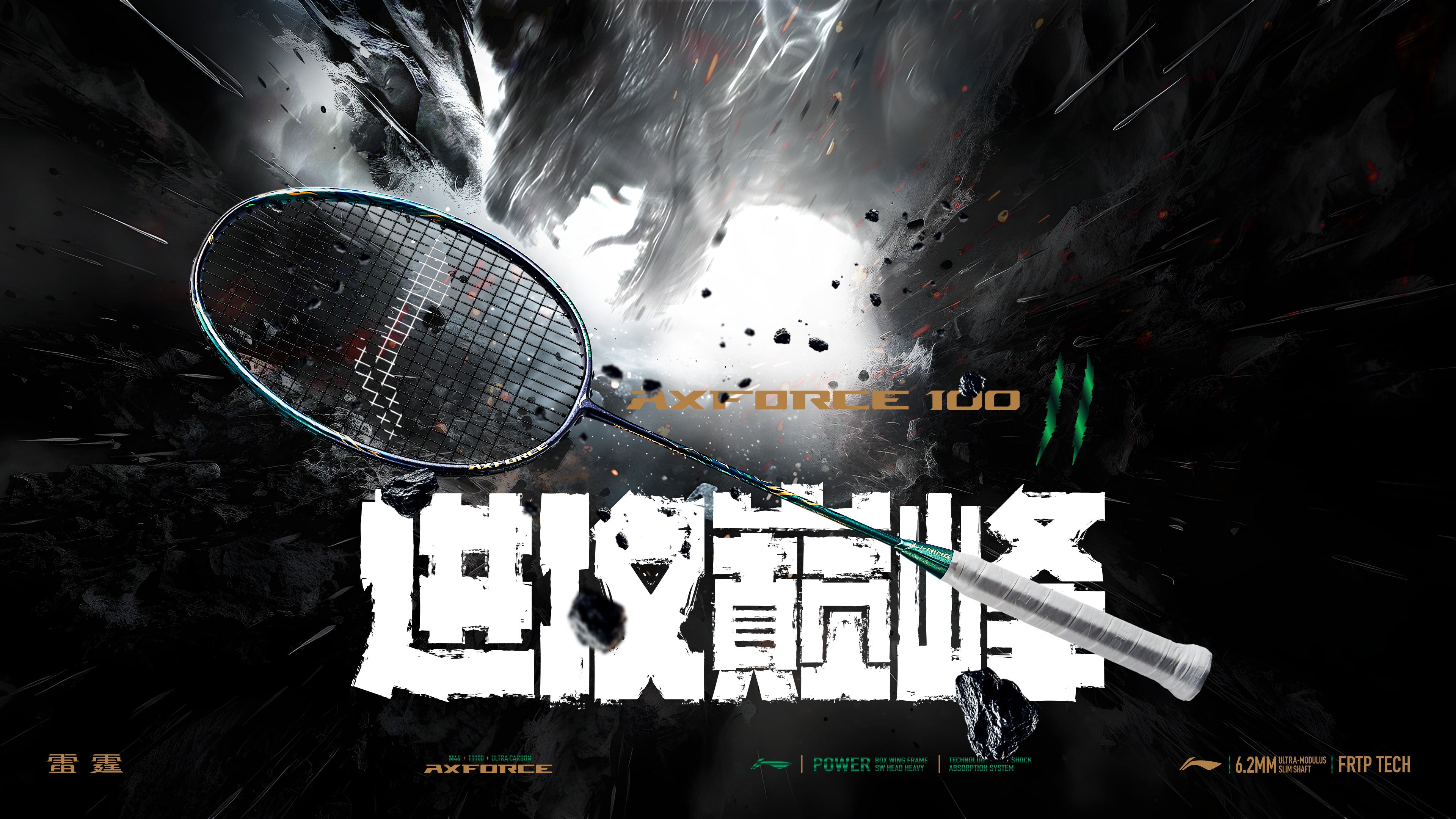 Badmintonschläger AXFORCE 100 II (4U) schwarz/grün unbespannt - AYPV039-4