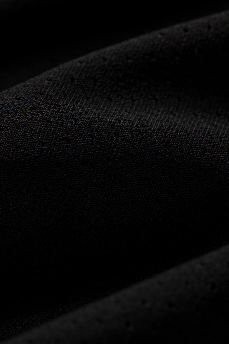 AT DRY: Nutzt die Kapillarwirkung (Siphon-Effekt), um Schweiß schnell von der Hautoberfläche abzuleiten, während er sich rasch auf der Stoffoberfläche verteilt und verdunstet, sodass die Haut trocken, kühl und angenehm bleibt. Das Gewebe ist schnell trocknend und atmungsaktiv. Wenn der Stoff durch Schweiß feucht wird, verteilt und verdunstet dieser schnell, um den Schweiß vom Körper wegzuleiten. Gleichzeitig hilft es, die Körpertemperatur zu senken, wenn diese zu hoch ist, und hält den Körper während des Trainings trocken, kühl und angenehm.