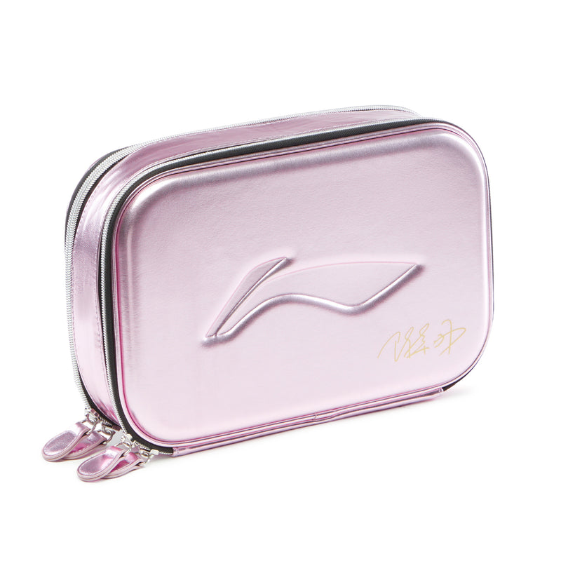 Die speziell für Chen Xingtong entwickelten Li Ning Tischtennisschlägerhüllen sind aus Hartschale gefertigt und bieten Platz für bis zu 2 Schläger. Darüber hinaus gibt es Reißverschlussfächer für diverses Zubehör. Die Innenseite ist mit weichem Stoff ausgekleidet, und eines der Fächer verfügt über zwei Netztaschen, während das andere mit einer Reißverschlusstasche ausgestattet ist, sodass für Ordnung gesorgt ist.