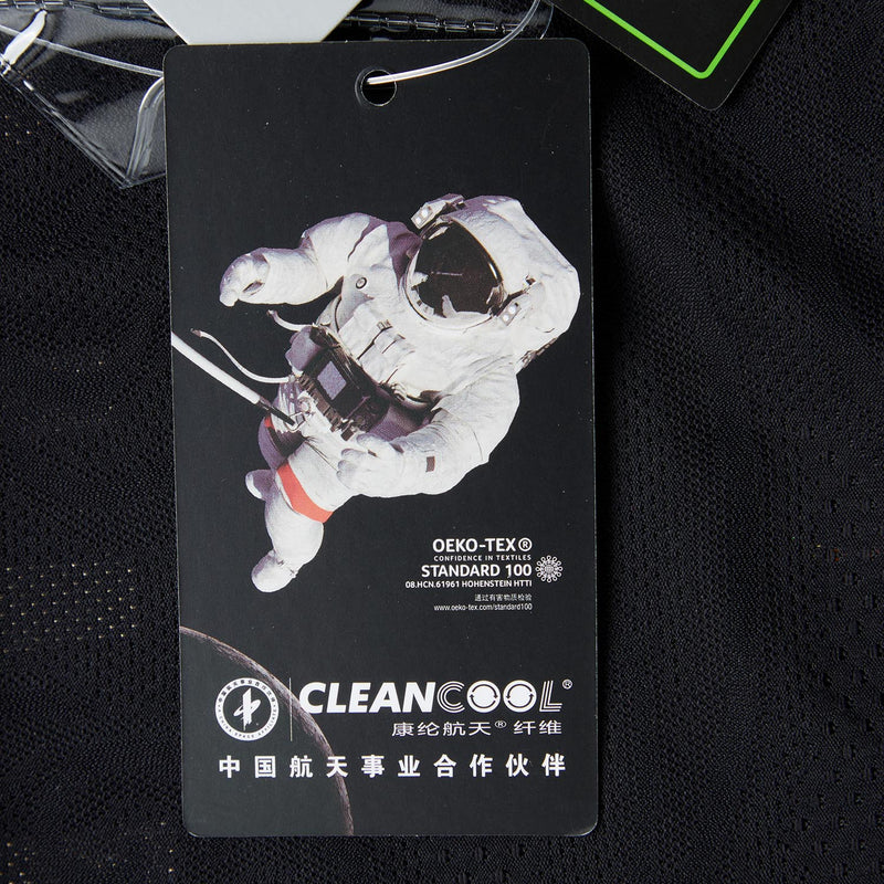 Der elastischer Stoff CLEANCOOL-Garn aus der Luft- und Raumfahrttechnologie mit schnelltrocknender und antibakterieller Funktion ergibt ein ausgezeichnetes Sporterlebnis.